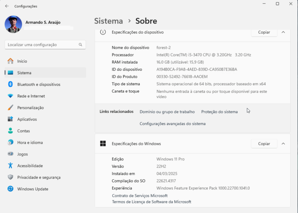 Hoje uso um Core i5 3470 que é uma linha muito boa. Está com Windows 11 e utilizo alguns dos programas listados aqui.