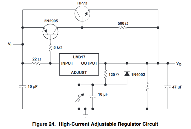 Também é possível adicionar um transistor de potência para aumentar a capacidade do CI que é de 1,5 A